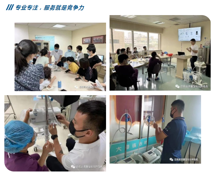 為更好的幫助醫(yī)護(hù)人員提升專業(yè)知識(shí)水平及對(duì)危重癥患者的救治能力,保證患者在需要時(shí)能及時(shí)、有效、安全地應(yīng)用高流量濕化治療儀,我司開展了理論知識(shí)和實(shí)操兩部分培訓(xùn),重點(diǎn)介紹了高流量氧療的臨床適應(yīng)證和注意事項(xiàng),并結(jié)合實(shí)操演練對(duì)高流量呼吸濕化治療儀使用中存在的問題進(jìn)行深入剖析。