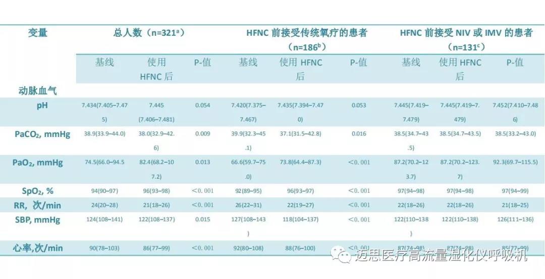 我們描述了在真實(shí)世界中HFNC患者的基本特征,臨床適應(yīng)癥和實(shí)際使用設(shè)置。我們還證實(shí)了HFNC對(duì)患者呼吸參數(shù)的積極影響。有關(guān)HFNC在既往臨床試驗(yàn)之外的人群中的療效和安